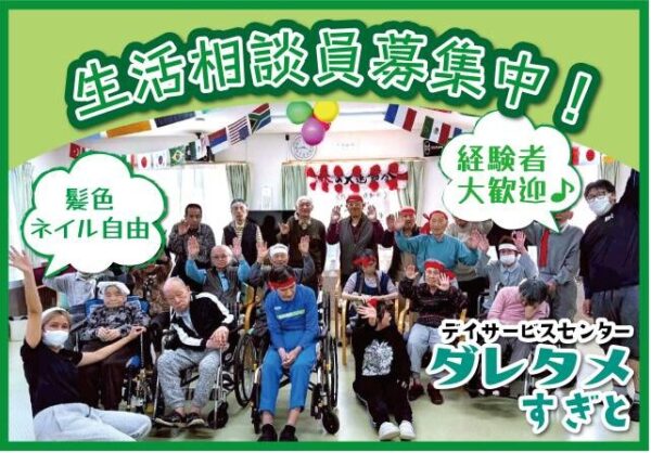 デイサービスセンター ダレタメ すぎと【生活相談員】髪色・ネイル等自由!あなたの個性大切にします。当社独自の手当も充実!賞与年3回支給!